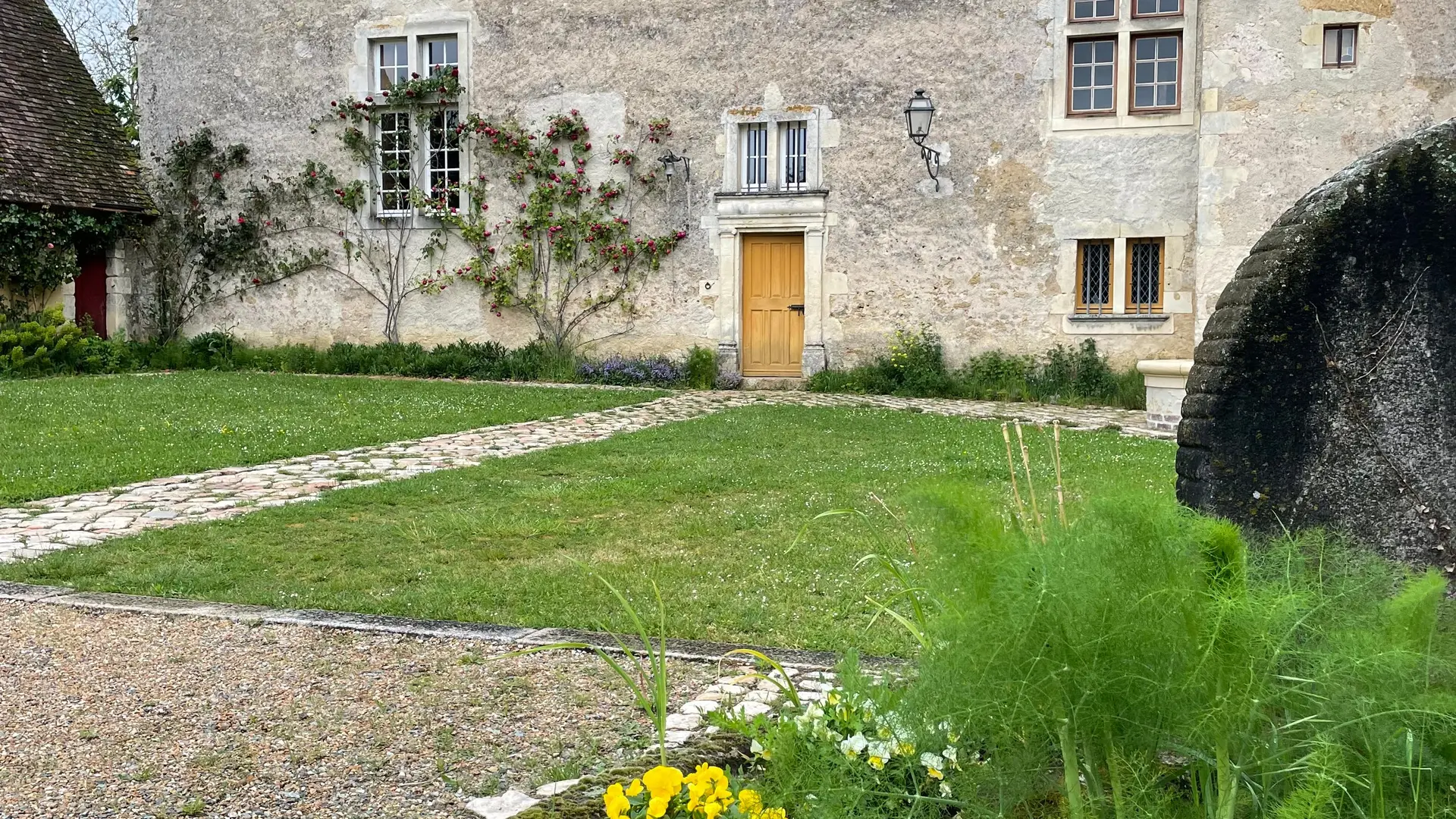 A 30 mn du Mans et 15 mn de Saint Calais, situé au cœur du village de Coudrecieux, le manoir de la Cour date du XVIe siècle. Les propriétaires y ont mis en place, au fil du temps, un parc en culture biologique comprenant un potager de 300m², un verger, des rosiers anciens. Une collection que les propriétaires seront heureux de partager avec vous.